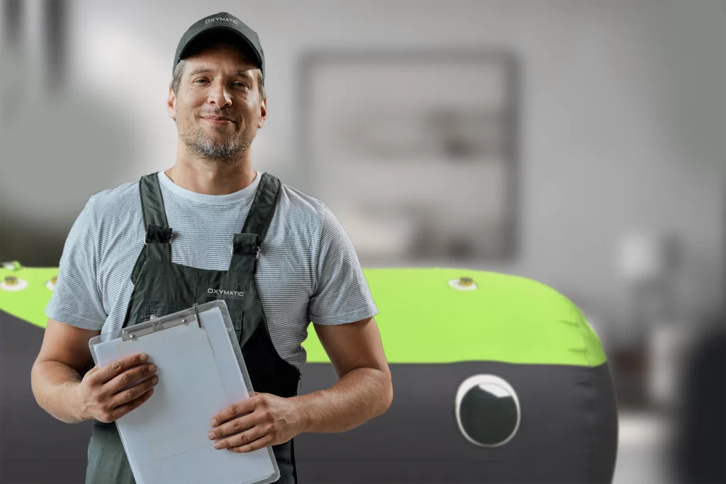 Bei Oxymatic® bieten wir einen umfassenden Service für hyperbare Kammern und garantieren Zuverlässigkeit und Sicherheit der Therapie. Unser erfahrenes Serviceteam bietet eine zweijährige Garantie, zusätzliche Schutzpläne, vollständigen technischen Support sowie Zugang zu Ersatzgeräten, um eine unterbrechungsfreie Behandlung sicherzustellen.